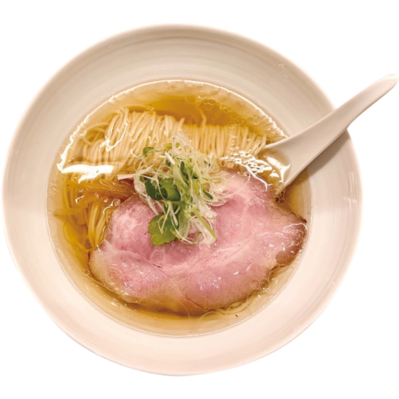 GOURMET黄金色に輝く透き通ったスープが美しい上品な塩ラーメンで、細めのストレート麺がスープと絶妙に絡み、芳醇な香りが広がる。 -